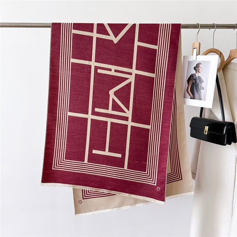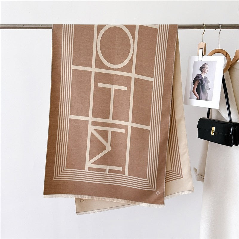 Material:Imitation CashmereStyle:All-match,ClassicFeature:Keep WarmOccasion:Business,Going out,CasualSeasons:Autumn Discover our warm scarf shawl with classic landscape letter print, made...
