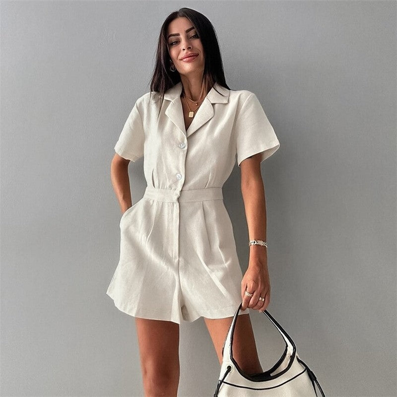 Material:Artificial Cotton,Flax,DacronStyle:Loose,Intellectual,Look-younger,LitheFeature:Breathable,Frenum,Thin,PlainNeckline:LapelOccasion:Going out,Casual,Vacation,Office,Workwear Suits,Beach,Urban,Simple,Urban Tune,Artistic Retro,Girlish Sweetness,Light Maturity,Stylish Selection,Leisure FashionSeasons:SummerType:RompersSleeve Length:1/4 SleeveSleeve Style:Raglan SleeveSize S...