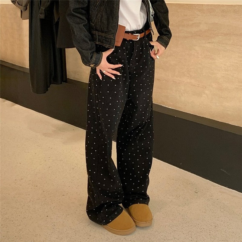High-Waisted Wide-Leg Solid Color Loose Fit Pants