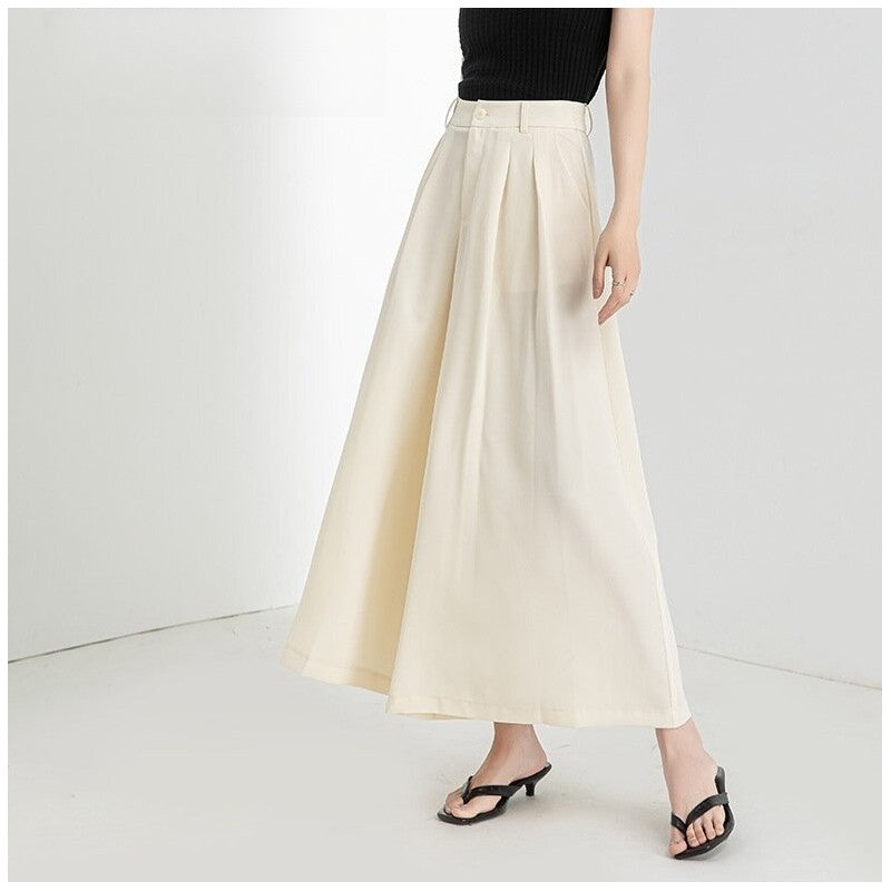 Solid Color Lightweight Pleated High Waist Capri Pants Skirt