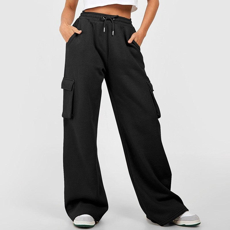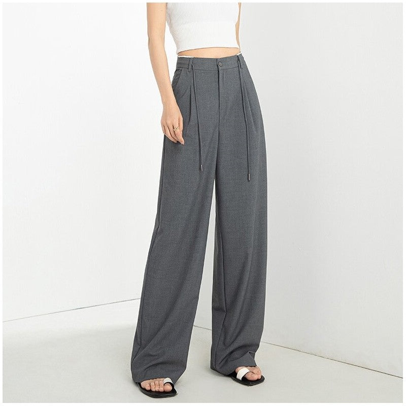 Solid Color High Waist Drawstring Loose Fit Casual Trousers
