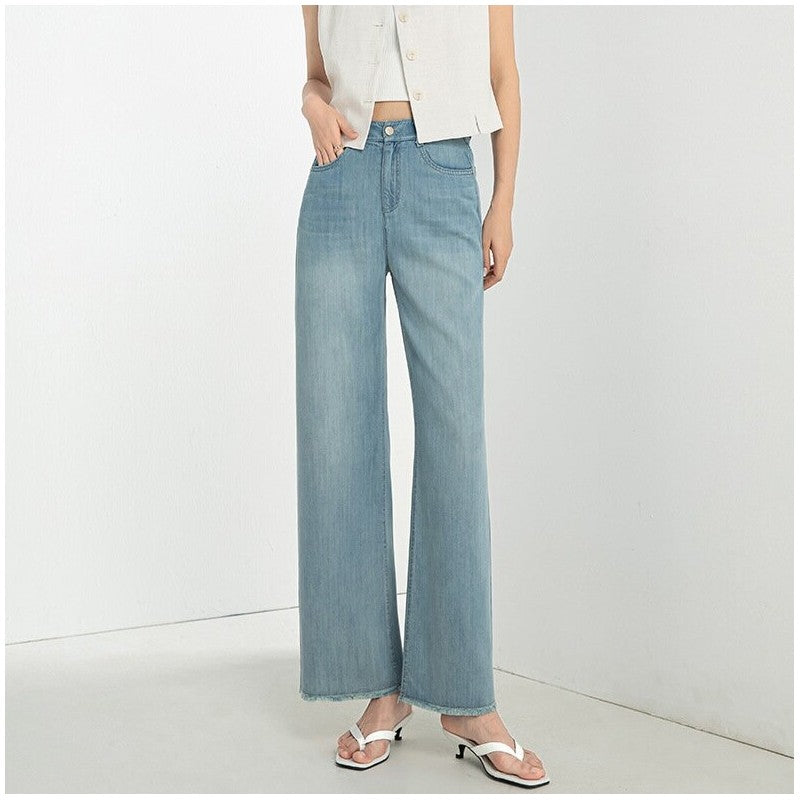 Material:Tencel,CottonFeature:Zipper,Plain,Thin,High-Waisted,FringedOccasion:Going out,Casual,Vacation,Office,Urban,Simple,Artistic Retro,Girlish Sweetness,Light Maturity,Stylish Selection,Leisure FashionSeasons:Spring,Summer,AutumnType:Jean Pants BottomsStyle:Loose,Intellectual,All-match,Look-thin,Look-younger,LitheSize 26 (inch) : Waist= 25.66 ;...