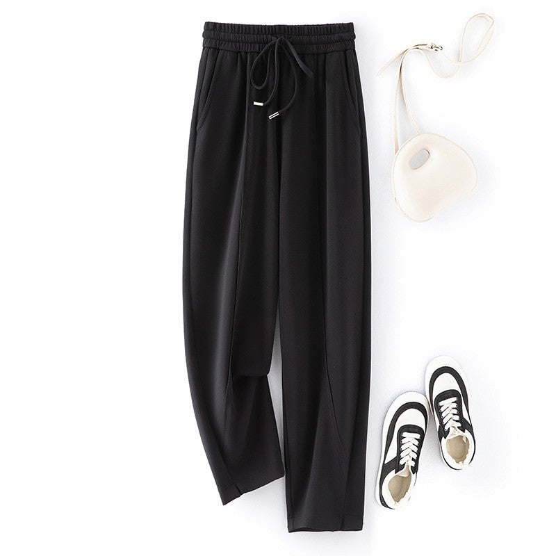 Feature:Elasticity,Plain,Thin,High-Waisted,Drawstring,PleatsOccasion:Going out,Casual,Vacation,Office,Urban,Simple,Artistic Retro,Girlish Sweetness,Light Maturity,Stylish Selection,Leisure FashionSeasons:Spring,Summer,AutumnStyle:Loose,Intellectual,All-match,Look-thin,Look-younger,LitheMaterial:Chinlon,CottonType:PantsSize 26 (inch) : Waist= 25.55 ; Hips= 36.19...