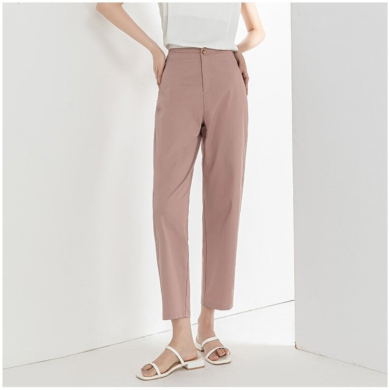 Solid Color High Waist Thin Nine-Point Harem Pants