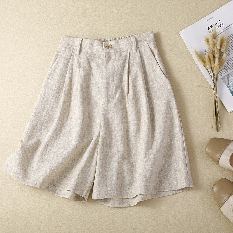Feature:Elasticity,Plain,ThinOccasion:Going out,Casual,Vacation,Office,Urban,Simple,Artistic Retro,Girlish Sweetness,Light Maturity,Stylish Selection,Leisure FashionSeasons:Spring,Summer,AutumnStyle:Loose,Intellectual,All-match,Look-youngerMaterial:CottonType:ShortsSize M (inch) : Front Length= 13.65 ; Waist...
