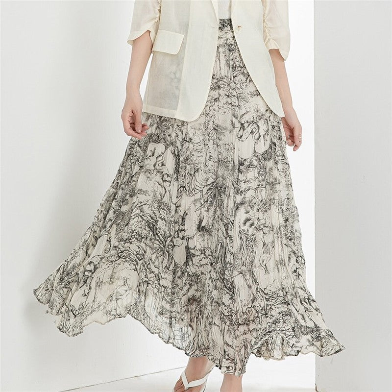 Material:Dacron,PolyamidFeature:Elasticity,Printing,PleatsOccasion:Going out,Casual,Vacation,Bohemia,Office,Beach,Urban,Artistic Retro,Girlish Sweetness,Light Maturity,Stylish Selection,Leisure FashionSeasons:Spring,Summer,AutumnStyle:Loose,All-match,LitheType:Long SkirtsSize S (inch) : Waist= 25.35 ; Length=...