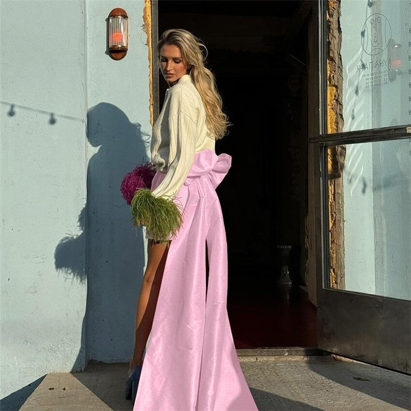 Matte Satin A-Line Mini Skirt with Bow Detail