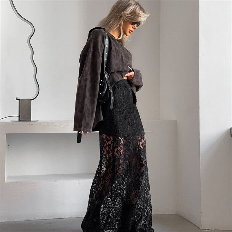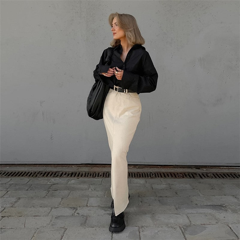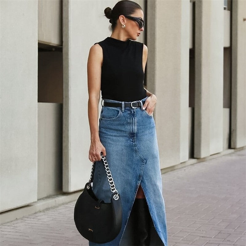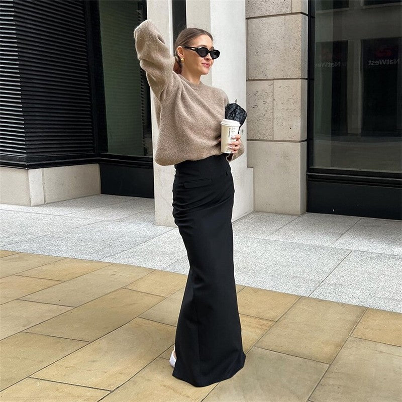 High-Waisted Black Fish Tail Floor-Length Split Skirt