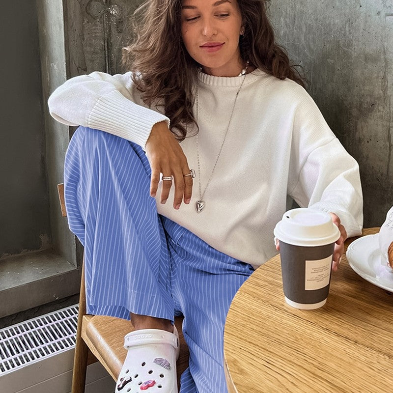 Wide Leg Striped Breathable Casual Pants with Elastic Waistband