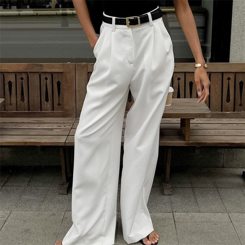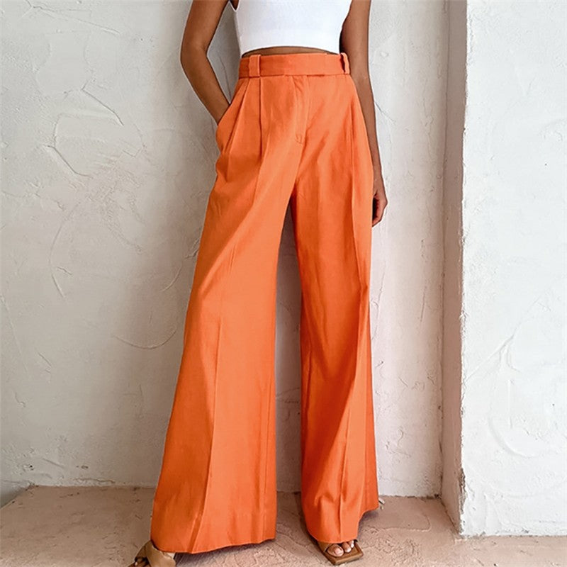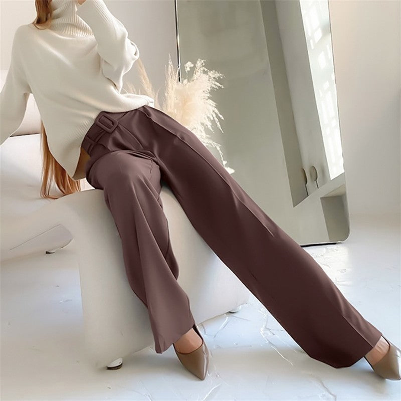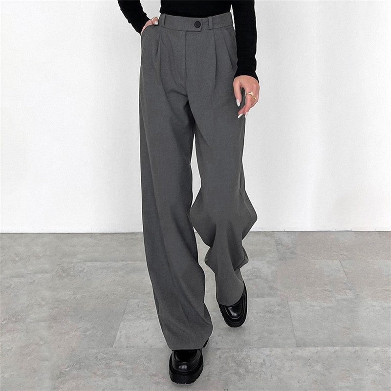 High-Waisted Solid Color Straight-Leg Casual Trousers
