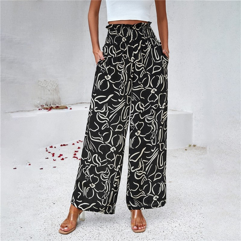 Chic Printed Wide Leg Trousers Featuring Elastic Waistband
