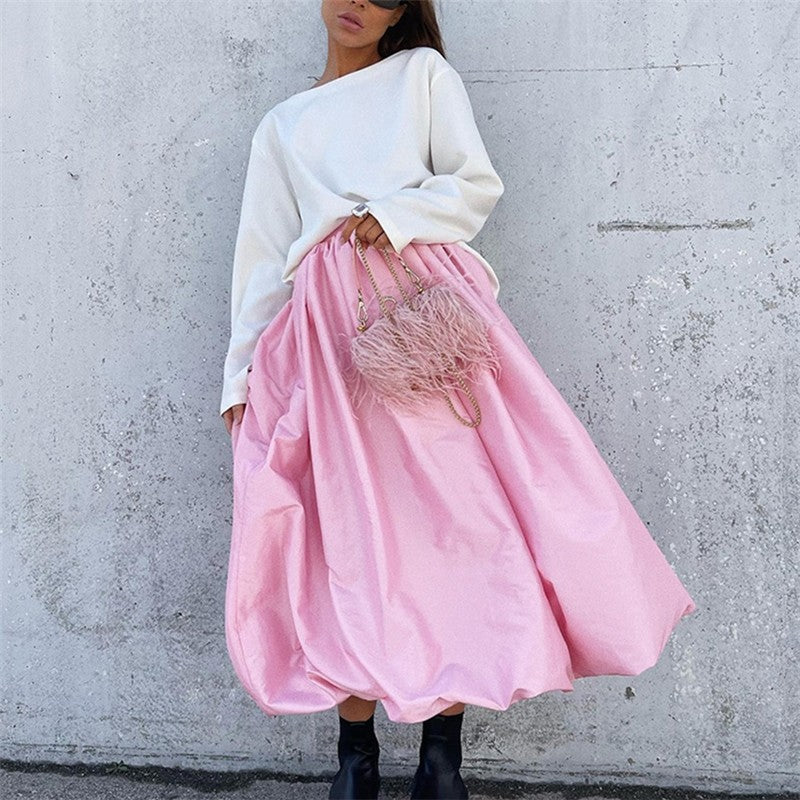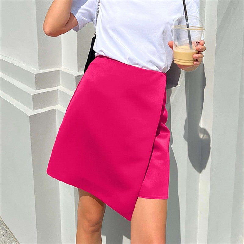 Elegant Solid Color A-Line Satin Skirt with Zipper