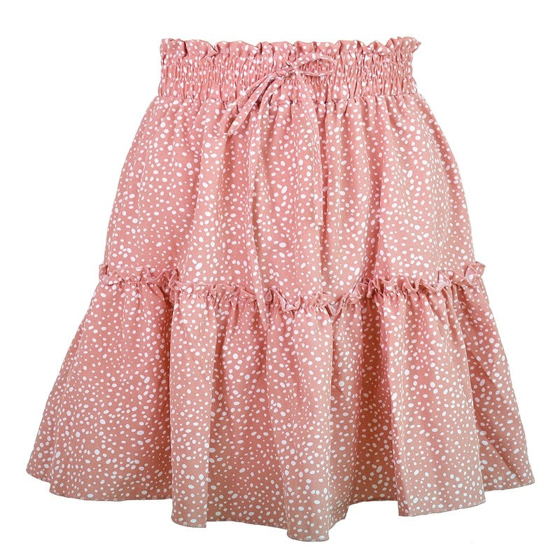 Material:Dacron,CottonFeature:Falbala,Elasticity,Printing,DrawstringOccasion:Going out,Casual,Artistic Retro,Girlish Sweetness,Light Maturity,Leisure FashionSeasons:SummerStyle:Loose,Cute,Intellectual,All-match,Look-younger,LitheType:Short SkirtsSize S (inch) : Waist = 25.74-33.54 ; Hips=...