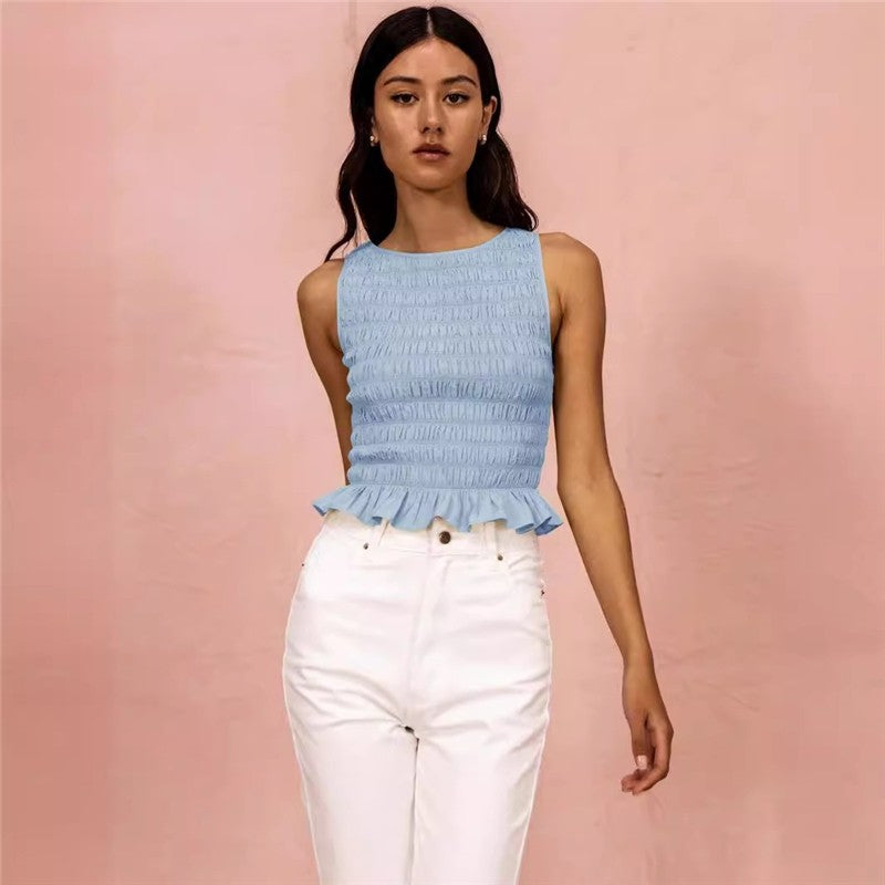 Material:DacronStyle:Cute,Intellectual,All-match,Look-youngerFeature:Falbala,PleatsNeckline:Round-neckOccasion:Going out,Casual,Artistic Retro,Girlish Sweetness,Light Maturity,Leisure FashionSeasons:SummerType:TankSize S (inch) : Bust = 29.25-37.05 ; Shoulder= 11.12...