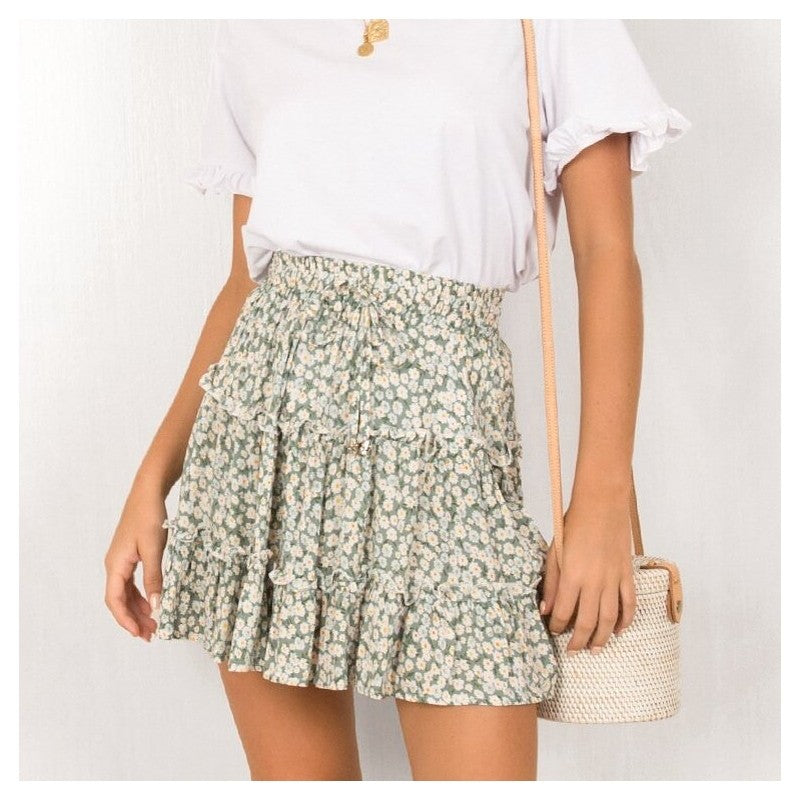 High-Waisted Floral Ruffle Hem Mini Skirt