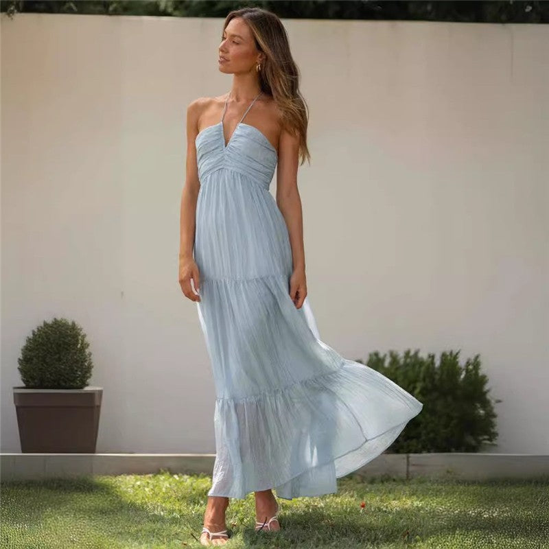 Material:DacronStyle:Cute,Intellectual,All-match,Look-younger,LitheFeature:Thin,BacklessNeckline:HalterneckOccasion:Going out,Casual,Vacation,Beach,Sexy,Artistic Retro,Girlish Sweetness,Light Maturity,Leisure FashionSeasons:SummerType:Long DressesSize XS (inch) : Bust= 25.74 ; Waist= 24.96...
