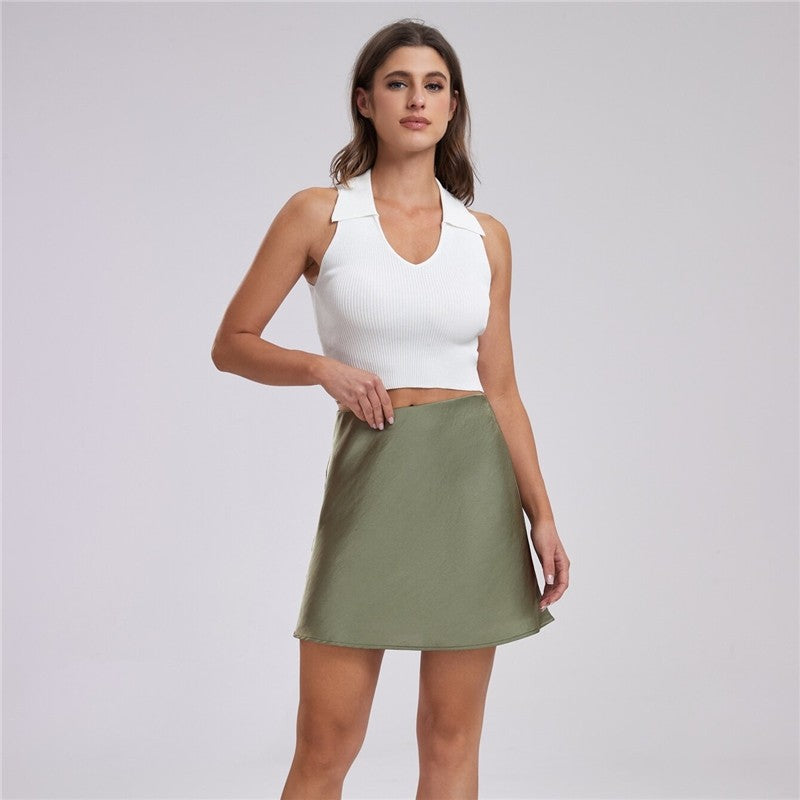 Bright Reflective Satin Pleated Mermaid Skirt Half Skirt