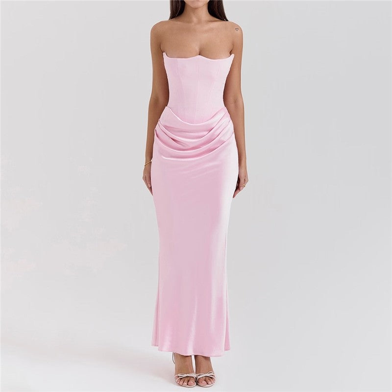 Fishbone Waist Cinched Backless Strapless Long Dress