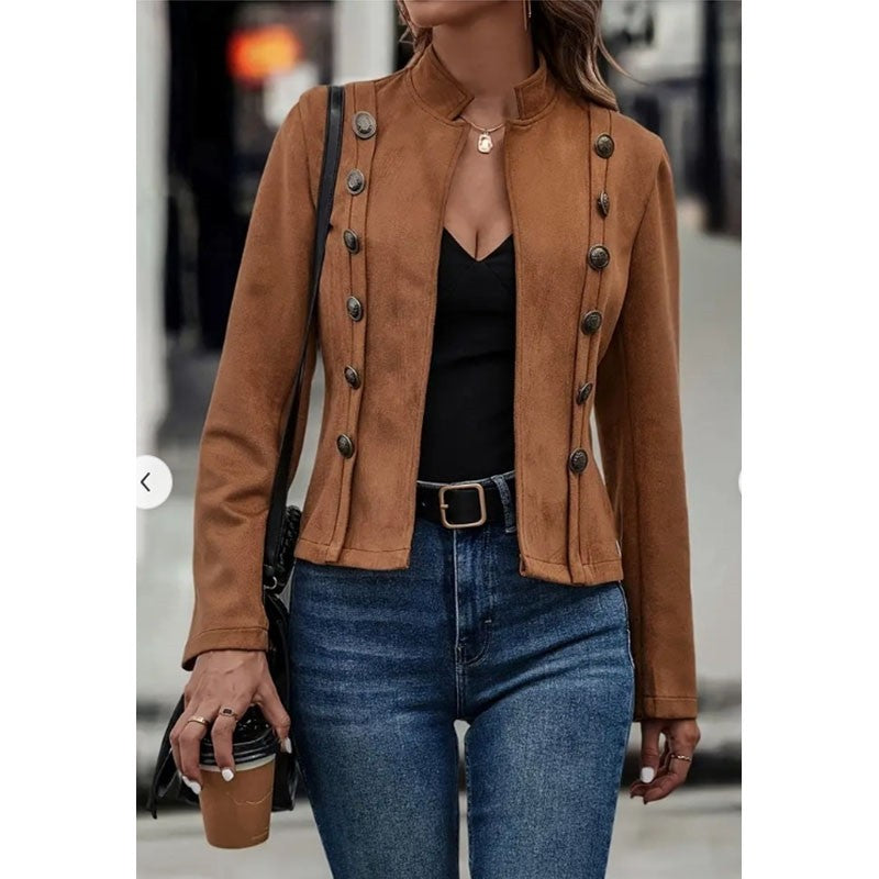 Vintage Double-Breasted Solid Color Deer Suede Jacket