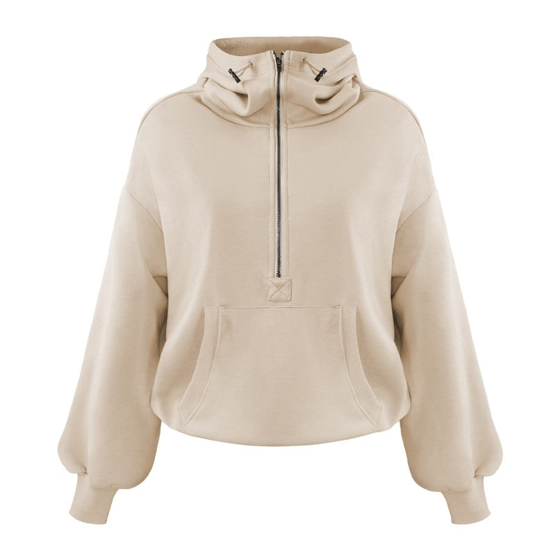 Solid Color Hooded Drawstring Half Zip Sweatshirt