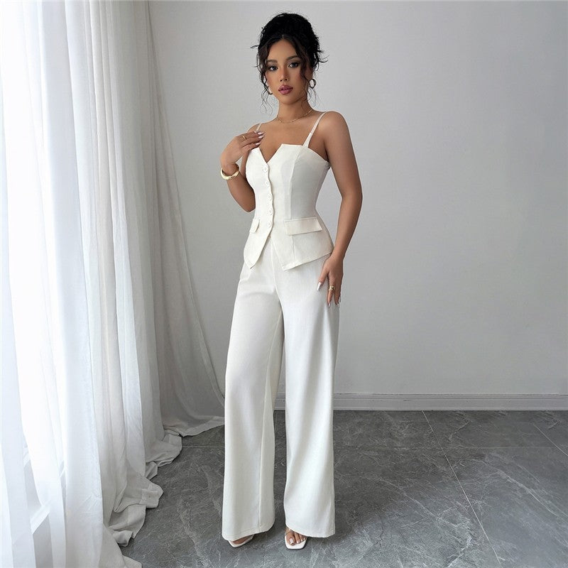 Solid Color Slim Strap Vest Wide Leg Pants Set