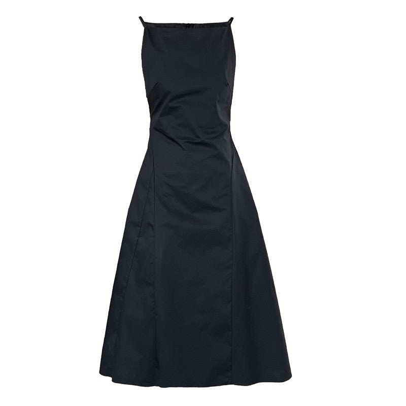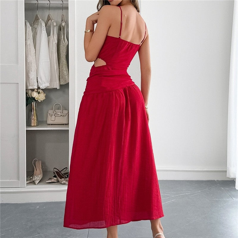 Solid Color Waist Tie Strap Dress