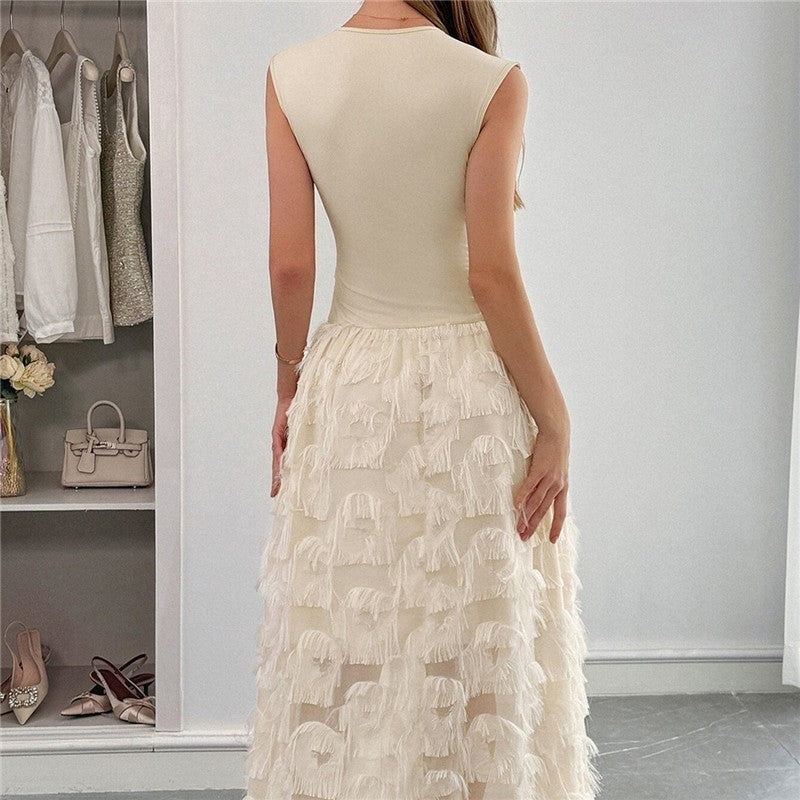Loose Sleeveless Double Layer Lace Trim Dress