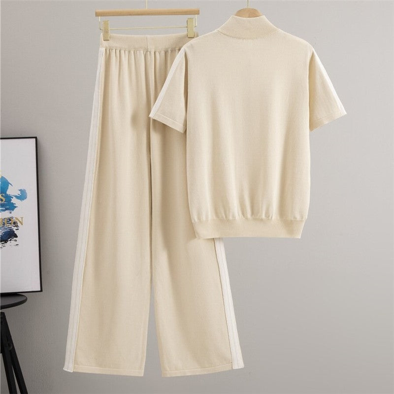 Polo Knit Sweater Wide Leg Pants Set