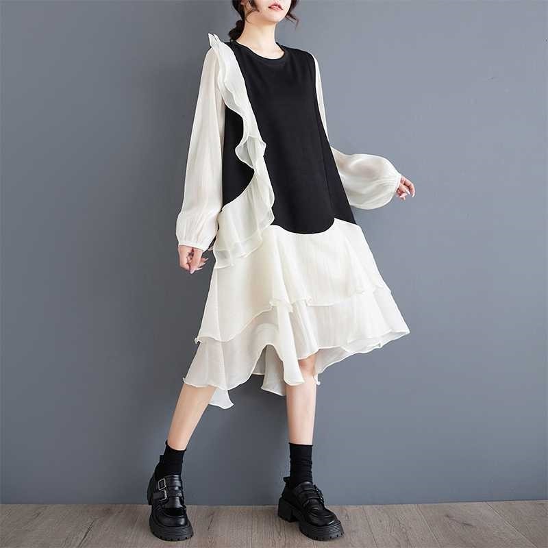 Asymmetrical Ruffle Hem Long Sleeve Dress