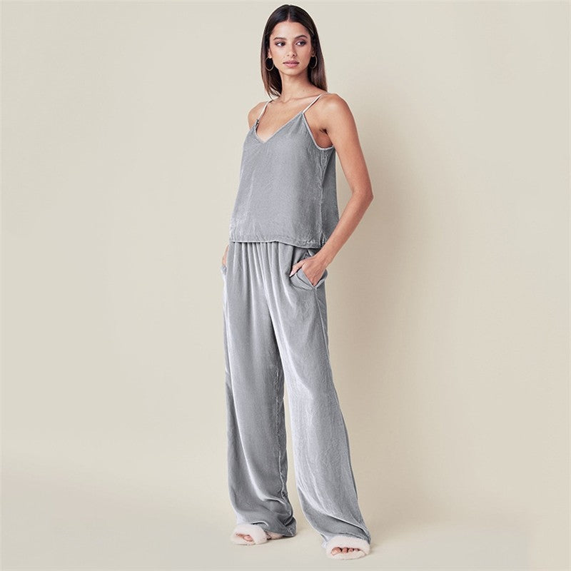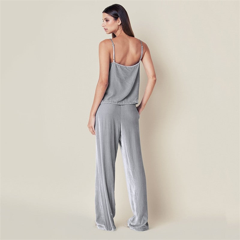 Solid Color Sleeveless Spaghetti Strap Top and Pants Two-Piece Pajama Set