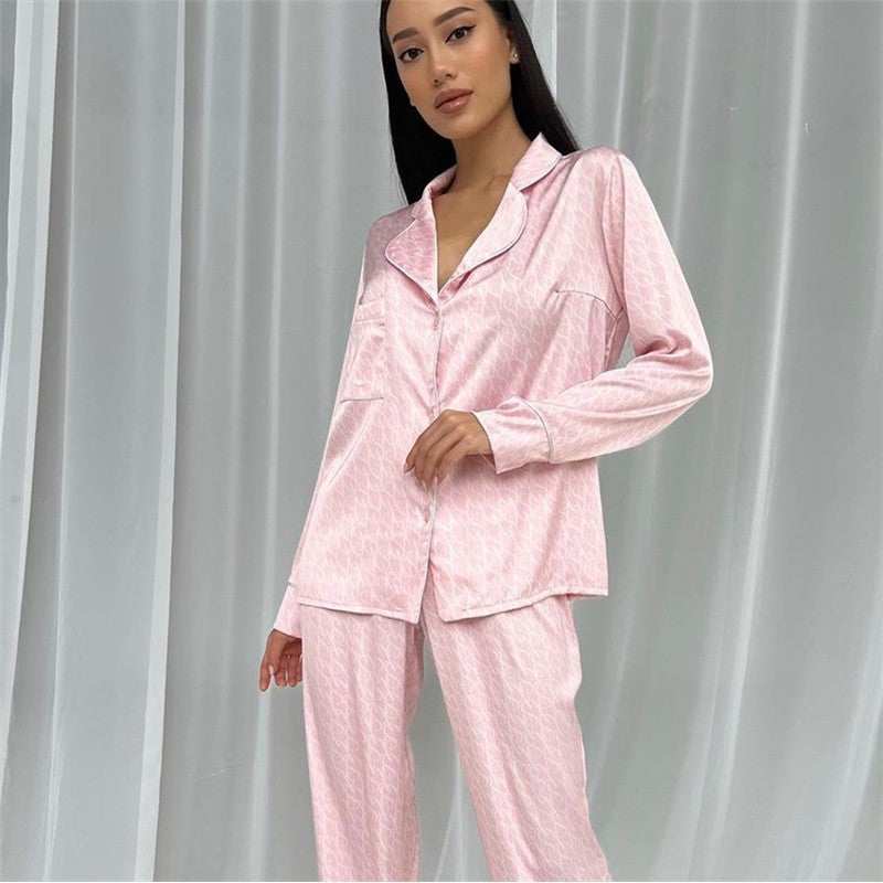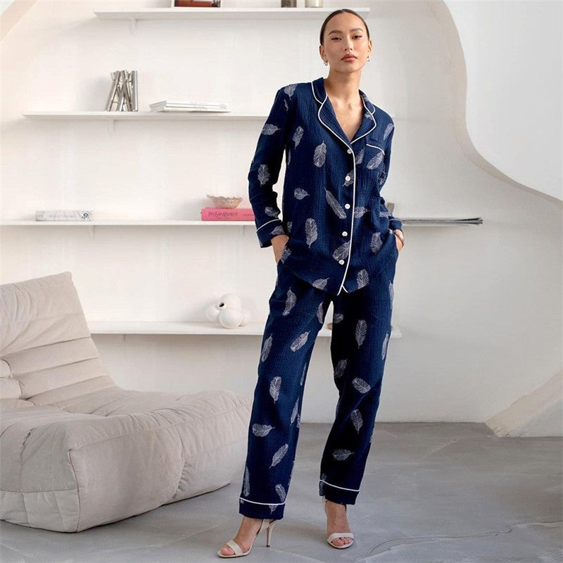Long Sleeve Lapel Single Breasted Printed Loose Two-Piece Suit Pajama Set