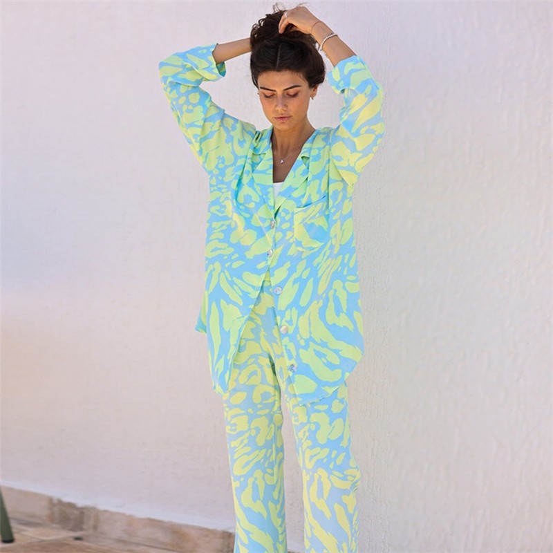 Material:DacronStyle:Loose,Lithe,ClassicFeature:Buttoned,Washable,Comfortable,Tied Waist,LeopardNeckline:LapelOccasion:Casual,Original Creation,Home WearSeasons:Spring,AutumnType:Two Pieces SetSleeve Length:Long SleevesSize S (inch) : Bust= 39.00 ; Waist...