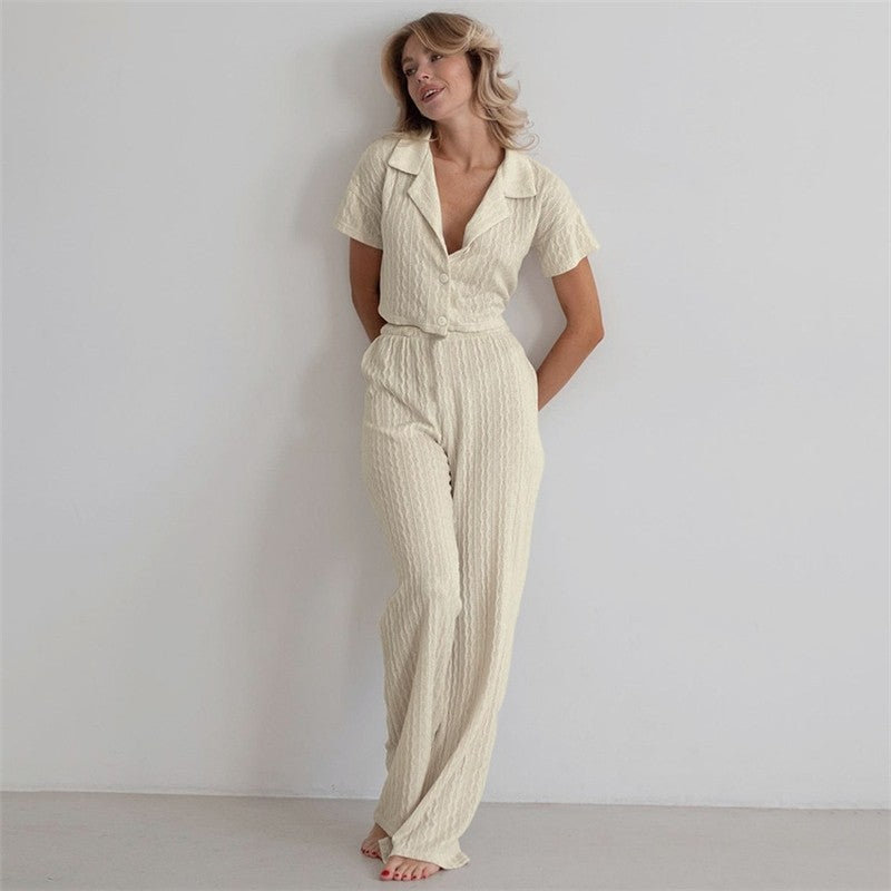 Casual Loose Long Sleeve Lapel Buttoned Blouse and Pants Two-Piece Homewear Pajama Set