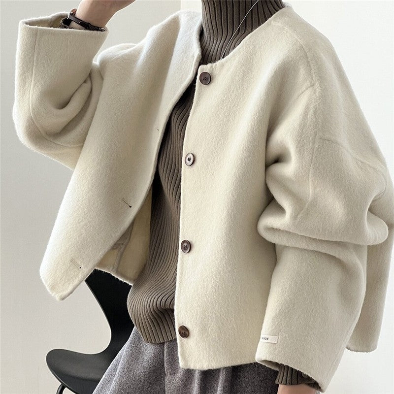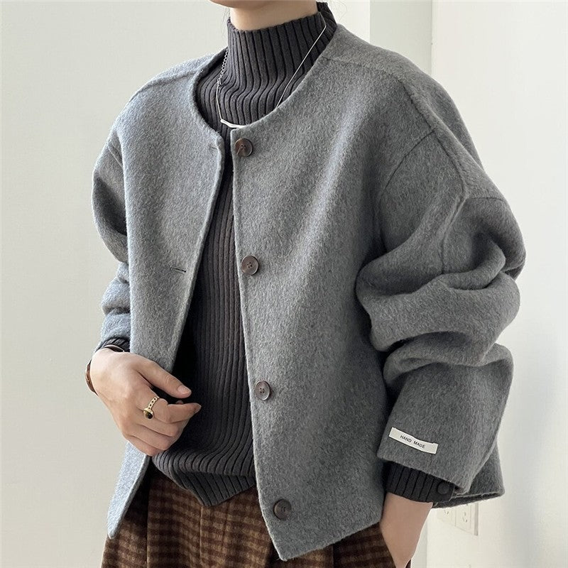 Material:Wool,DacronStyle:Loose,Intellectual,All-matchNeckline:Round-neckOccasion:Going out,Casual,Artistic Retro,Girlish Sweetness,Light Maturity,Leisure FashionSeasons:Spring,Autumn,WinterType:Woolen CoatSleeve Length:Long SleeveSleeve Style:Raglan SleeveSize S (inch) : Bust=...