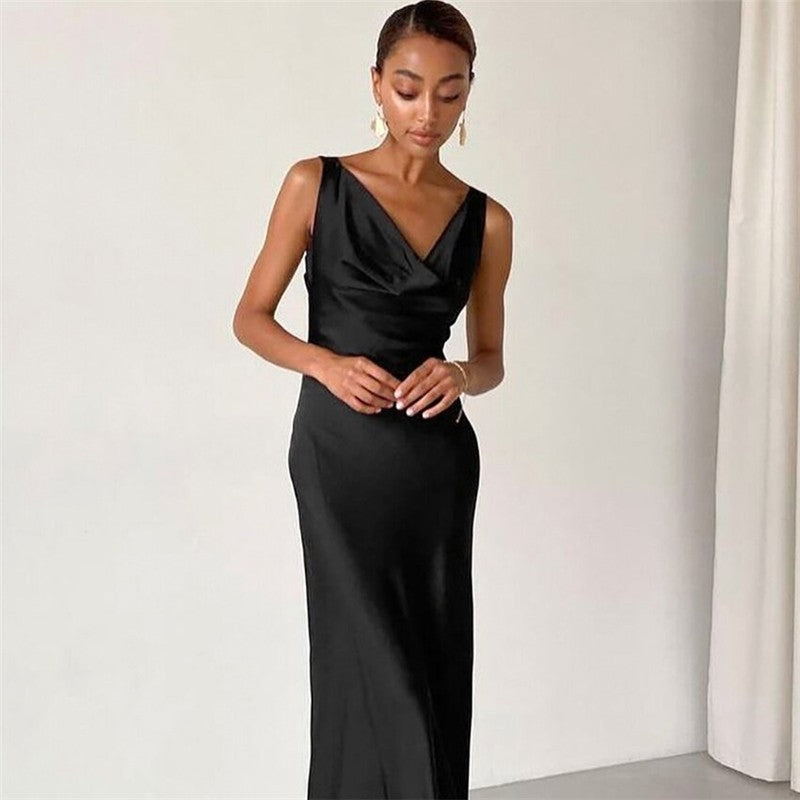 Satin High-Waisted Halter Deep V-Neck Bodycon Prom Dress