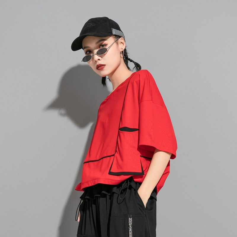 Irregular Fake Two-Piece Solid Color Short Sleeve T-Shirt