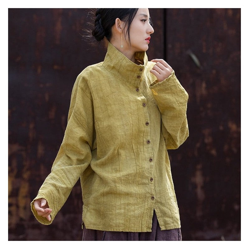 Material:Cotton,HempStyle:Loose,Intellectual,All-match,Look-youngerNeckline:Half TurtleneckOccasion:Going out,Casual,Artistic Retro,Girlish Sweetness,Light Maturity,Leisure FashionSeasons:Spring,AutumnType:BlousesSleeve Length:Long SleeveSleeve Style:Raglan SleeveSize One_size (inch) : Bust=...