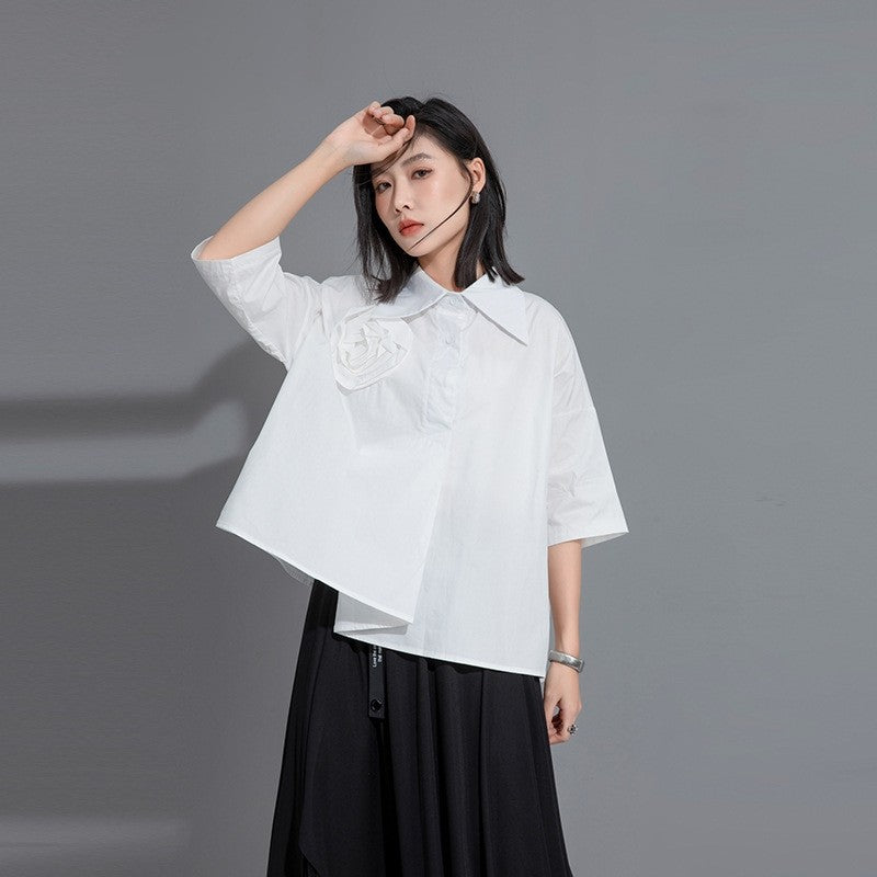 Design Of Irregular Short Sleeve T-Shirt With 3D Flower Pattern