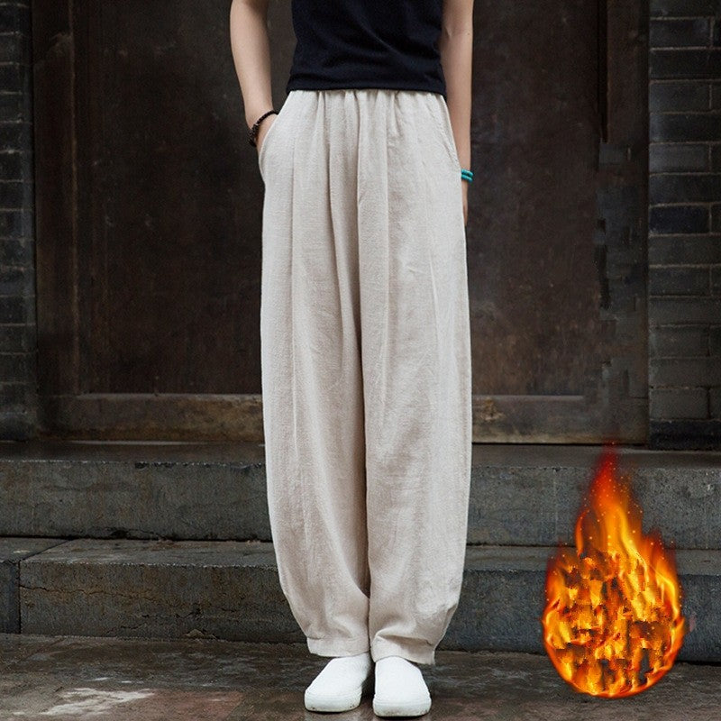 Material:Cotton,HempStyle:Loose,Intellectual,All-match,Look-younger,LitheFeature:Velvet,ElasticityOccasion:Going out,Casual,Artistic Retro,Girlish Sweetness,Light Maturity,Leisure FashionSeasons:Spring,Autumn,WinterType:PantsSize One_size (inch) : Waist= 24.18 ; Hips= 47.58 ;...