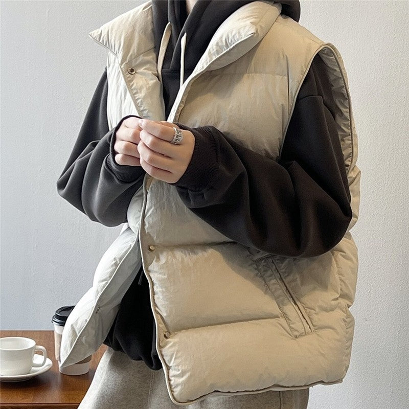 Thick Loose Simple Stand-Up Collar Cotton Vest