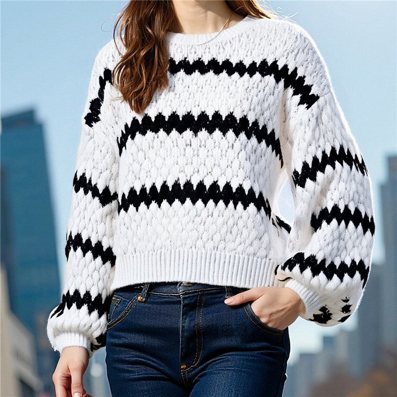 Material:DacronFeature:StripedOccasion:Going out,Casual,Artistic Retro,Girlish Sweetness,Light Maturity,Leisure FashionNeckline:Round-neckSeasons:Spring,Autumn,WinterStyle:Loose,Intellectual,All-match,Look-youngerSleeve Length:Long SleeveType:SweaterSleeve Style:Balloon SleevesSize S (inch) : Bust= 40.56...
