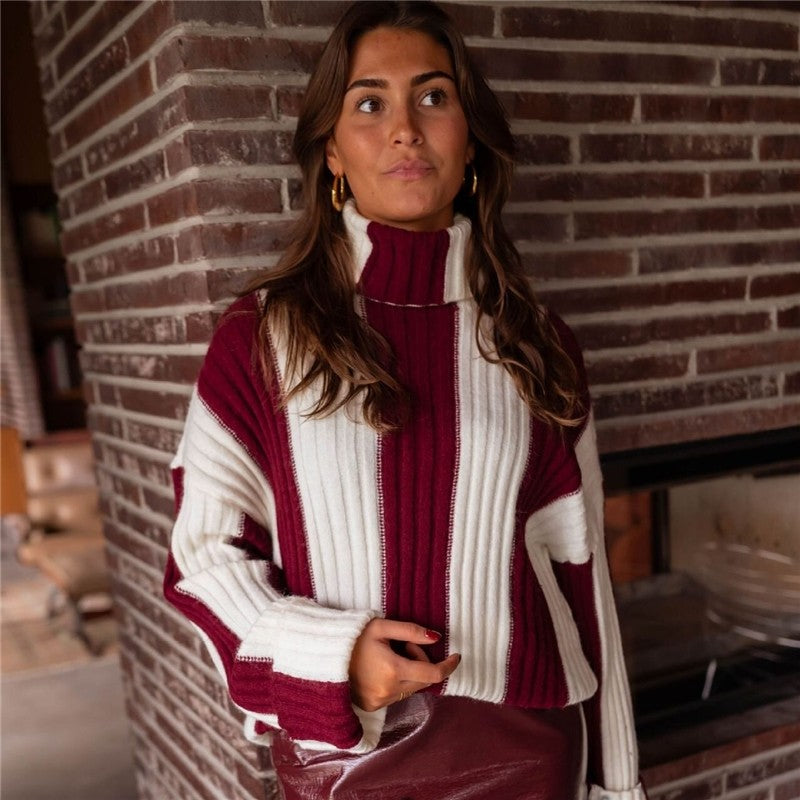 Color Block Stripe High Neck Sweater