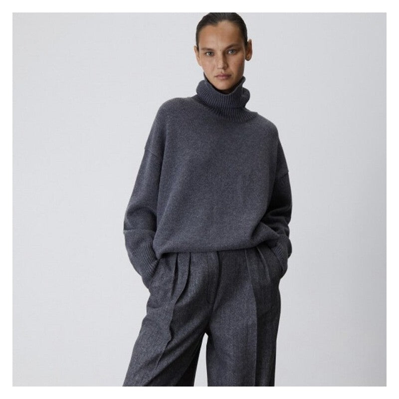 Relaxed Drop Shoulder High Neck Chunky Knit Sweater