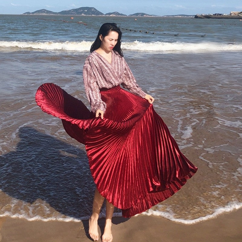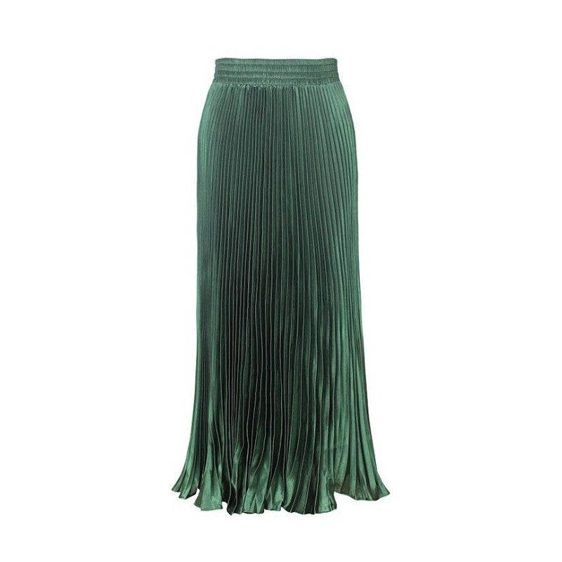 Bright Reflective Satin Pleated Mermaid Skirt Half Skirt