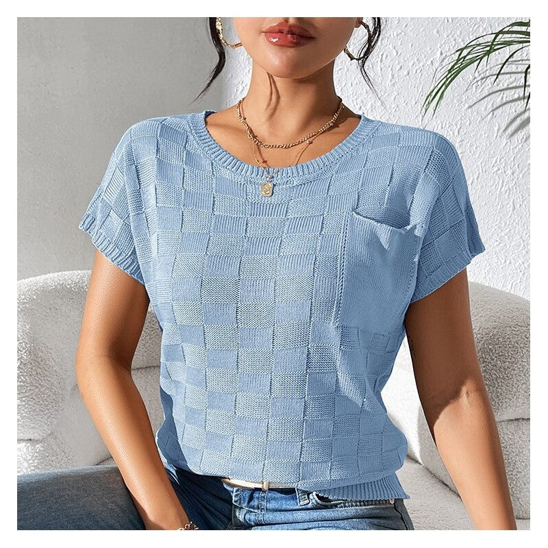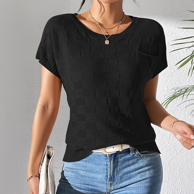 Casual Loose-Fit Solid Color Knit Short Sleeve Top