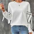 Contrast Color 3D Bow Round Neck Long Sleeve Sweatshirt