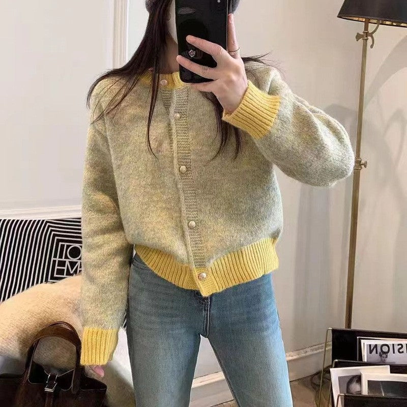 Contrast Color Long Sleeve Buttoned Casual Short Cardigan Sweater