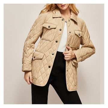 Fashionable Diamond Quilted Mid-Length Down Cotton Coat