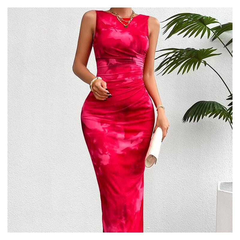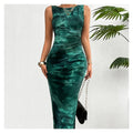 #Floral Print Sleeveless Dress, #Bodycon Mesh Dress, #Split-side Zipper Dress, #Summer Dress, #Sexy Dresses, #Casual Fashion, #Artistic Retro Style, #Round-neck Dress, #Intellectual Beauty Line, #Leisure Fashion Style,