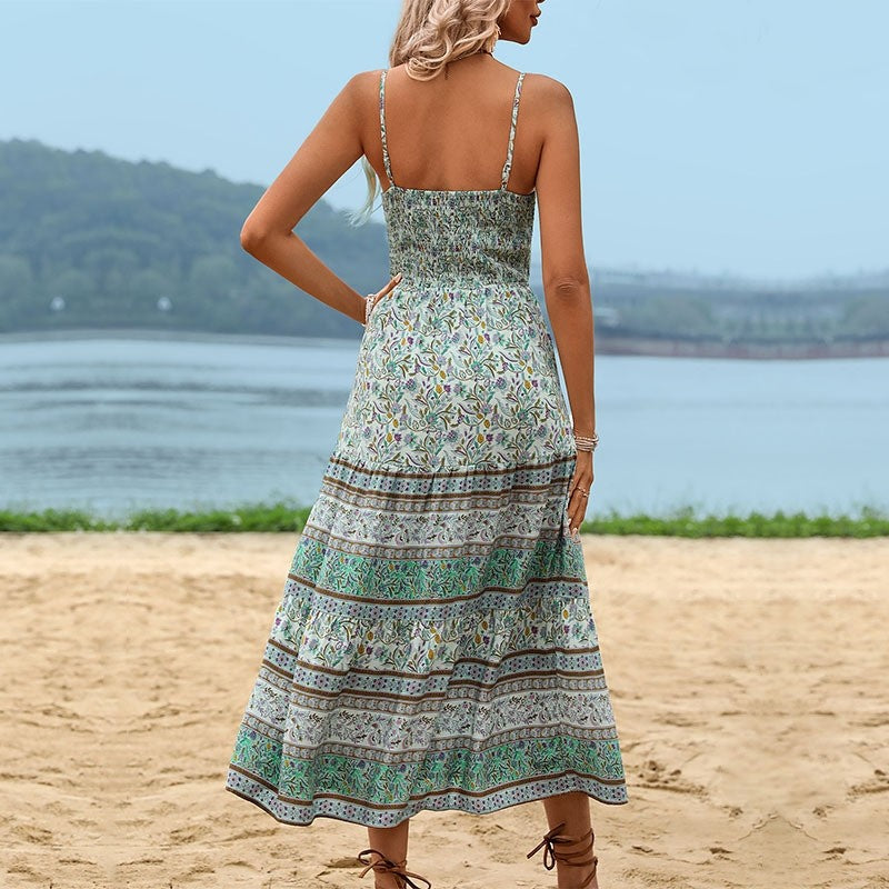 Elevate your summer wardrobe with a chic Floral Print Strappy Maxi Dress crafted from Viscose Fiber. This cute and versatile piece effortlessly blends casual and going-out looks for any occasion. Its spaghetti-strap neck and elastic waist offer a flattering fit, perfect for vacation vibes or beach outings.